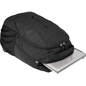 Mochila Backpack 16.0″ Ascend, Compatimiento acolchado para portatil o tableta, bolso frontal oculto, Estación de trabajo para boligrafos, lapices y accesorios de oficina, porta botellas de malla de Jersey, Asa superior de neopreno para transporte suave y correas de hombro ergonómicas, Exterior de poliester duradero, Color Negro.