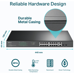TP-Link switch de montaje en bastidor Gigabit de 18 puertos con 16 puertos PoE +